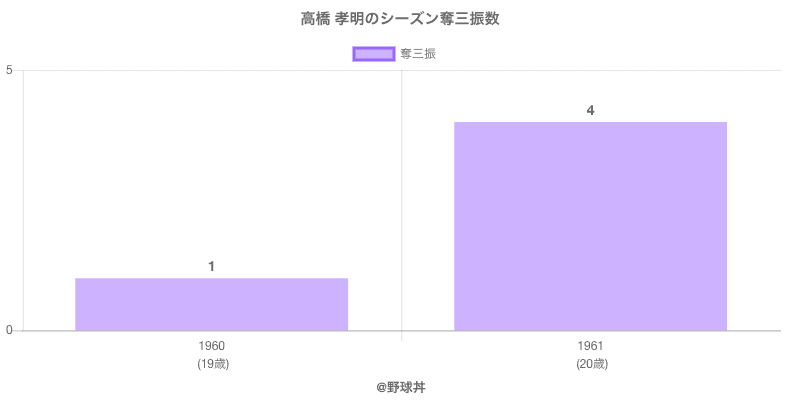たかはし たかあき 高橋 孝明 高橋 孝明 (85歳)は1960年から1961年にかけて活躍した元阪神所属のプロ野球選手です。 投打は右投右打で、守備位置は主に投手、日本球界初出場は1960年で当時20歳でした。 同年代には八木(元広島東洋)や渡辺(元サンケイ)がいます。 過去には1961年阪神で全8試合出場防御率1.64という結果を残しています。
