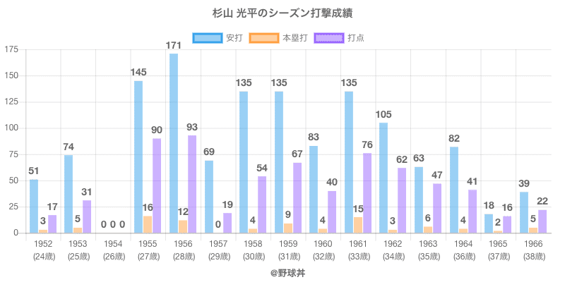| 1959 | 1位 | .323 | 135 | 9 | 67 | |
