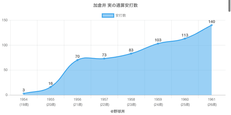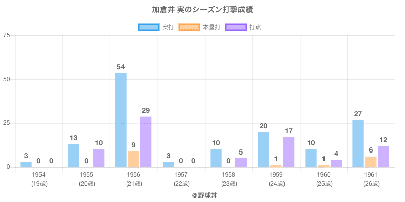 | 1960 | 近鉄バファロー | 34 | 71 | .141 | 10 | 1 | 4 |