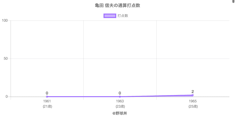 かめだ のぶお 亀田 信夫 亀田 信夫 (86歳)は1961年から1965年にかけて活躍した元国鉄やサンケイ所属のプロ野球選手です。 投打は右投右打で、守備位置は主にができ、日本球界初出場は1961年で当時22歳でした。 同年代には小川(元大洋)や稲垣(元大毎)がいます。 過去には1965年サンケイで全27試合出場ヒット6本という結果を残しています。