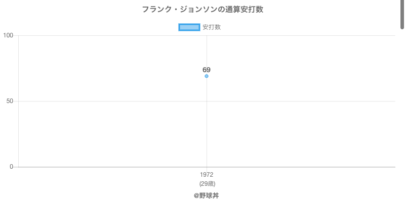 フランク・ジョンソン (83歳)は1972年から1972年にかけて活躍した元ロッテ所属のプロ野球選手です。 投打は右投右打で、守備位置は主にができ、日本球界初出場は1972年で当時30歳でした。 同年代には船田(元ヤクルト)宮下(元国鉄)がいます。 過去には1972年ロッテで全101試合出場ヒット69本という結果を残しています。