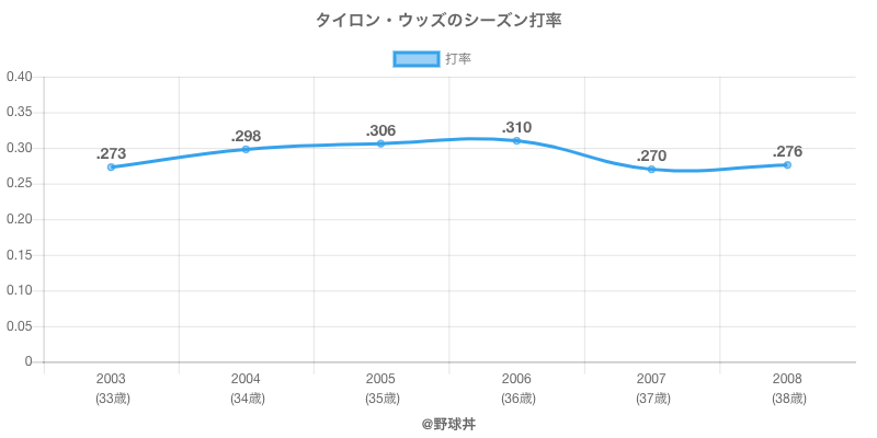 タイロン・ウッズ (56歳)は2003年から2008年にかけて活躍した元横浜や中日所属のプロ野球選手です。 投打は右投右打で、守備位置は主に一塁手・外野手ができ、日本球界初出場は2003年で当時34歳でした。 同年代には山田(元北海道日本ハム)やマット(元千葉ロッテ)がいます。 過去には2006年中日で全144試合出場ヒット162本や2008年中日で全140試合出場ヒット135本という結果を残しています。 また4度主要タイトルを獲得しています。(最多本塁打3回 / 最多打点1回)