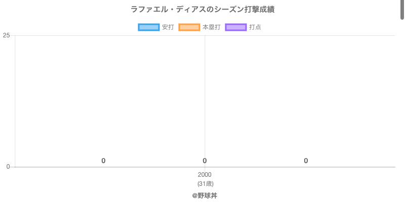 ラファエル・ディアス ラファエル・ディアス (56歳)は2000年から2000年にかけて活躍した元西武所属のプロ野球選手です。 投打は右投右打で、守備位置は主に投手、日本球界初出場は2000年で当時32歳でした。 同年代には矢野(元阪神)や中村(元近鉄)がいます。 過去には2000年西武で全7試合出場防御率7.56という結果を残しています。