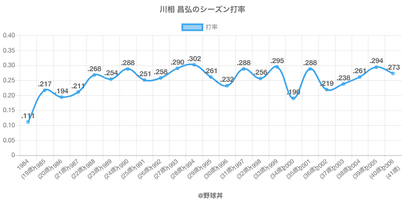 | 2004 | 中日ドラゴンズ | 80 | 23 | .261 | 6 | 1 | 3 |