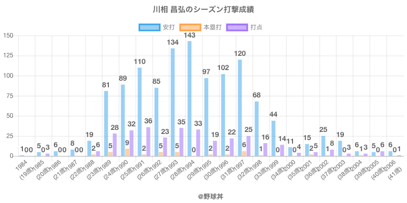 | 1994 | 9位 | .302 | 143 | 0 | 33 |