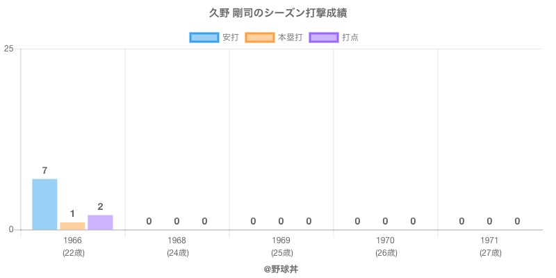 | 1966 | 阪神タイガース | 38 | 93 | .143 | 1 | 6 | 1 | 36 |