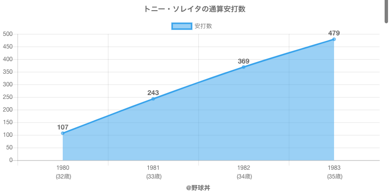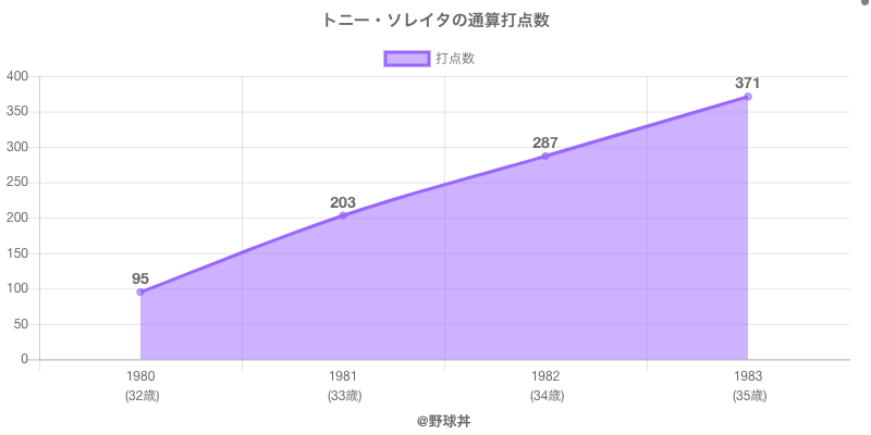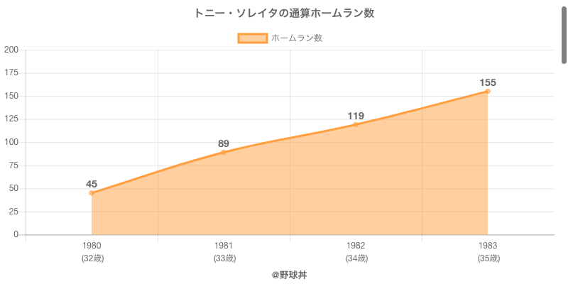 トニー・ソレイタ (78歳)は1980年から1983年にかけて活躍した元日本ハム所属のプロ野球選手です。 投打は左投左打で、守備位置は主にができ、日本球界初出場は1980年で当時33歳でした。 同年代にはジム(元日拓)西山(元広島東洋)がいます。 過去には1982年日本ハムで全130試合出場ヒット126本や1981年日本ハムで全128試合出場108打点という結果を残しています。 また2度主要タイトルを獲得しています。(最多本塁打1回 / 最多打点1回)