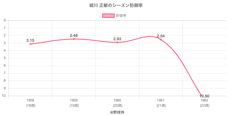 | 年度 | 球団 | 順位 | 防御率 | 試合 | 勝利 | 敗北 |