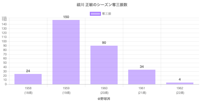 | 1959 | 50 | 220 | .720 | 18 | 7 | 6 | 150 | |