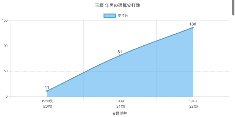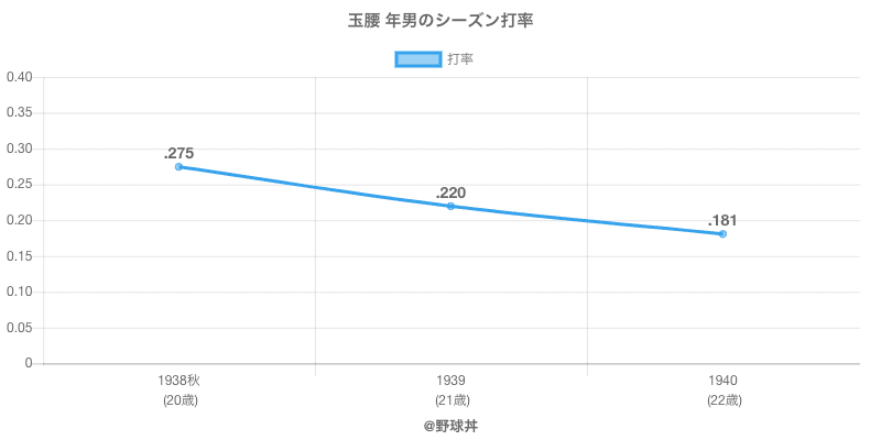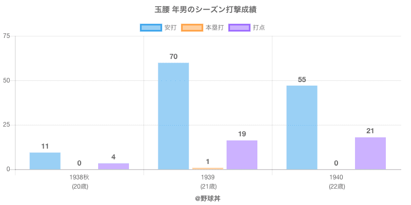 | 1938秋 | ライオン | 16 | 40 | .275 | 11 | 0 | 4 |