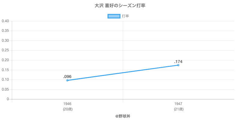 大沢 喜好は1946年から1947年にかけて活躍した元東急やセネタース所属のプロ野球選手です。 投打は右投右打で、守備位置は主に内野手ができ、日本球界初出場は1946年で当時21歳でした。 同年代には根津(元セネタース)や井上(元広島)がいます。 過去には1947年東急で全88試合出場ヒット44本や1946年セネタースで全28試合出場ヒット5本という結果を残しています。