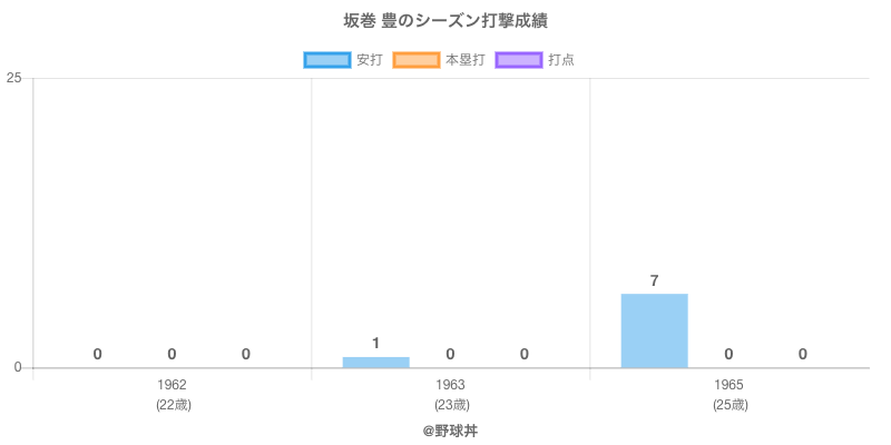 坂巻 豊 (86歳)は1962年から1965年にかけて活躍した元国鉄やサンケイ所属のプロ野球選手です。 投打は右投右打で、守備位置は主にができ、日本球界初出場は1962年で当時23歳でした。 同年代には宮田(元読売)新井(元東京)がいます。 過去には1965年サンケイで全55試合出場ヒット7本という結果を残しています。