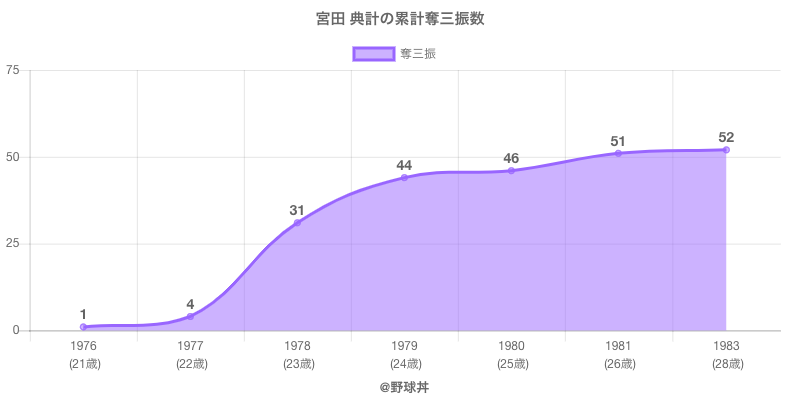 宮田 典計 (71歳)は1976年から1983年にかけて活躍した元阪急や阪神所属のプロ野球選手です。 投打は右投右打で、守備位置は主に投手、日本球界初出場は1976年で当時22歳でした。 同年代には石田(元阪急)鈴木(元中日)がいます。 過去には1978年阪神で全14試合出場27奪三振や1979年阪神で全7試合出場13奪三振という結果を残しています。