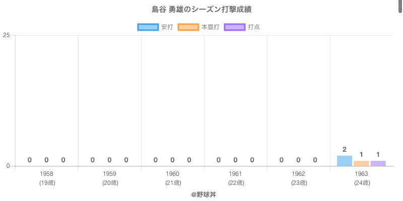 | 1958 | 国鉄スワローズ | 3 | 1 | .000 | 0 | 0 | 0 |
