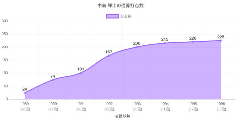 | 1989 | 日本ハムファイターズ | 81 | 236 | .233 | 55 | 9 | 24 |