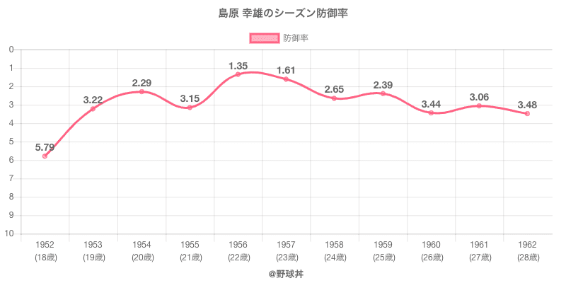 | 年度 | 球団 | 順位 | 防御率 | 試合 | 勝利 | 敗北 |