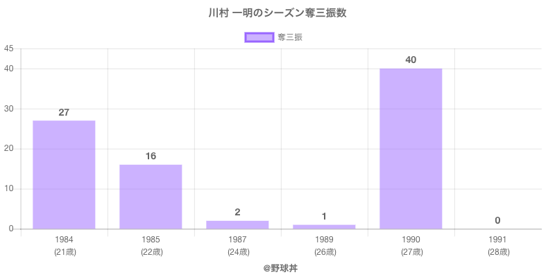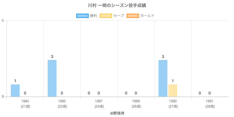 | 1990 | ヤクルトスワローズ | 30 | 46 | .429 | 3 | 4 | 0 | 40 |