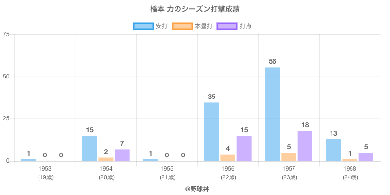 | 1958 | 毎日大映オリオンズ | 75 | 82 | .159 | 13 | 1 | 5 |