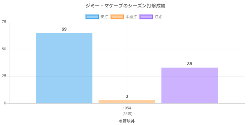 ジミー・マケーブ ジミー・マケーブ (97歳)は1954年から1954年にかけて活躍した元高橋所属のプロ野球選手です。 投打は右投右打で、守備位置は主にができ、日本球界初出場は1954年で当時26歳でした。 同年代にはダリル(元阪急)や斎藤(元東映)がいます。 過去には1954年高橋で全99試合出場ヒット69本という結果を残しています。