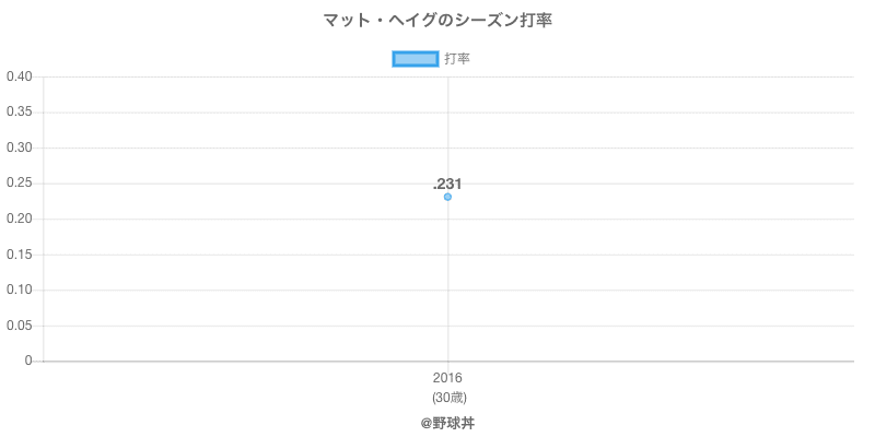 マット・ヘイグ (40歳)は2016年から2016年にかけて活躍した元阪神所属のプロ野球選手です。 投打は右投右打で、守備位置は主にができ、日本球界初出場は2016年で当時31歳でした。 同年代には松坂(元埼玉西武)やニック(元東北楽天)がいます。 過去には2016年阪神で全31試合出場ヒット24本という結果を残しています。