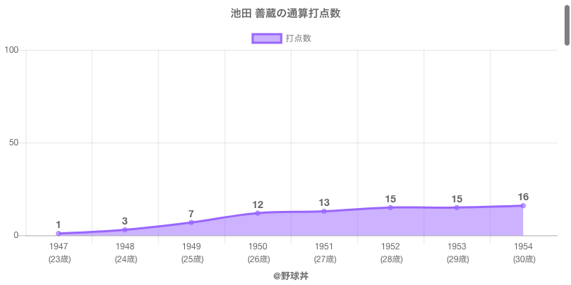 | 1947 | 大陽ロビンス | 30 | 196 | .318 | 7 | 15 | 15 | 74 |