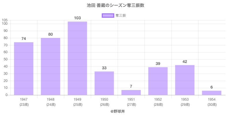 | 1949 | 大映スターズ | 41 | 233 | .393 | 11 | 17 | 13 | 103 |