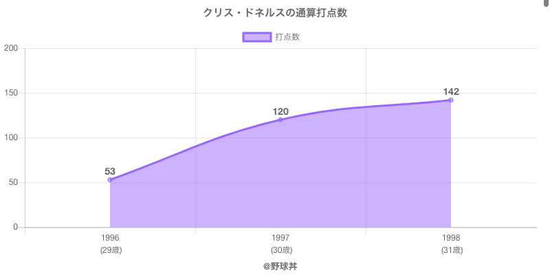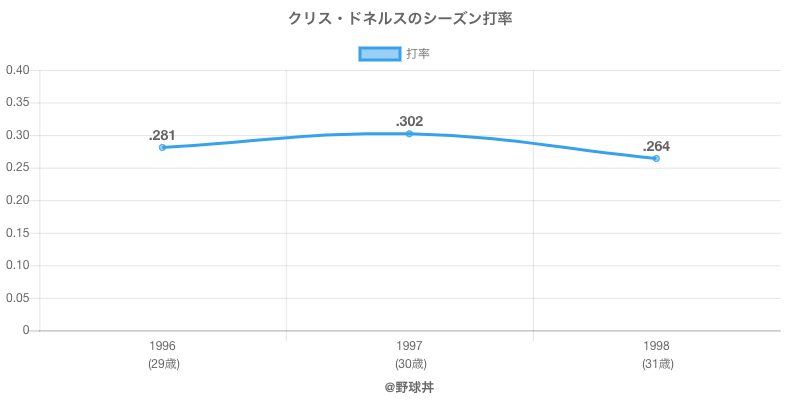 クリス・ドネルス (59歳)は1996年から1998年にかけて活躍した元近鉄やオリックス所属のプロ野球選手です。 投打は右投左打で、守備位置は主にができ、日本球界初出場は1996年で当時30歳でした。 同年代には矢作(元日本ハム)や川越(元福岡ダイエー)がいます。 過去には1997年オリックスで全112試合出場ヒット116本や1996年近鉄で全108試合出場ヒット91本という結果を残しています。