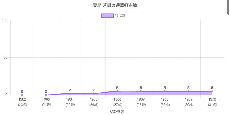 | 1964 | 東京オリオンズ | 56 | 31 | .065 | 2 | 0 | 2 |