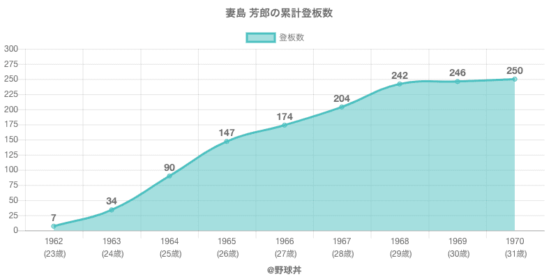 | 1964 | 東京オリオンズ | 56 | 151 | .545 | 6 | 5 | 2 | 93 |