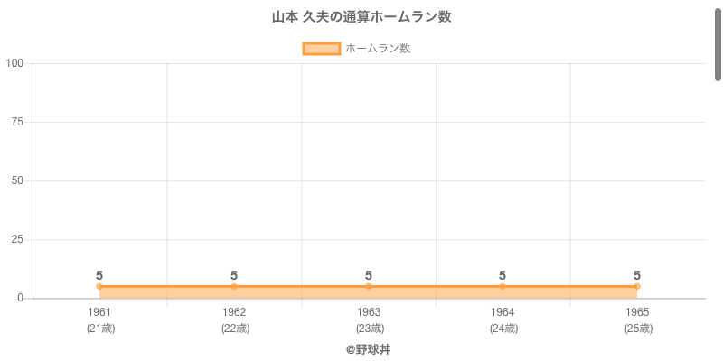 | 1964 | 中日ドラゴンズ | 22 | 26 | .192 | 5 | 0 | 2 |
