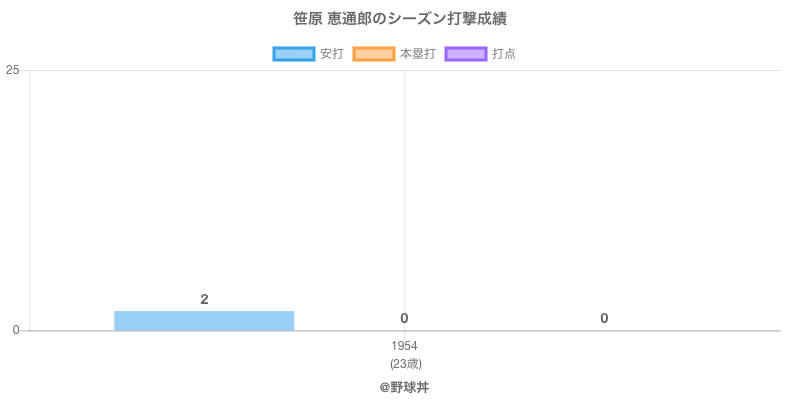 ささはら えつろう 笹原 恵通郎 笹原 恵通郎 (95歳)は1954年から1954年にかけて活躍した元東映所属のプロ野球選手です。 投打は左投左打で、守備位置は主に一塁手ができ、日本球界初出場は1954年で当時24歳でした。 同年代には石川(元東映)や八浪(元大映)がいます。 過去には1954年東映で全16試合出場ヒット2本という結果を残しています。