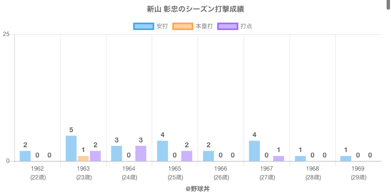 | 1962 | 南海ホークス | 20 | 9 | .222 | 2 | 0 | 0 |