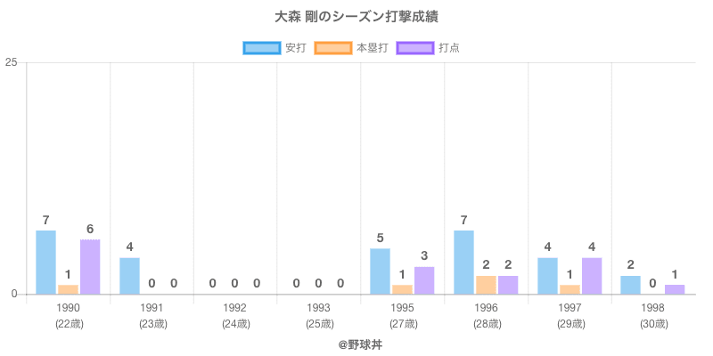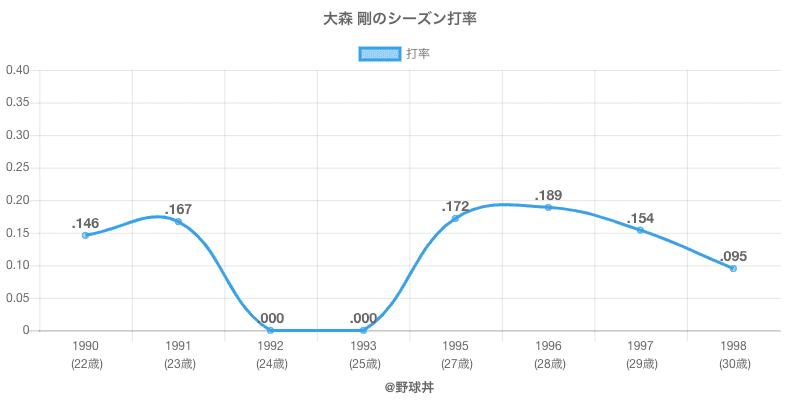 | 1998 | 近鉄バファローズ | 9 | 21 | .095 | 2 | 0 | 1 |