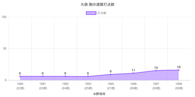 | 1990 | 読売ジャイアンツ | 38 | 48 | .146 | 7 | 1 | 6 |