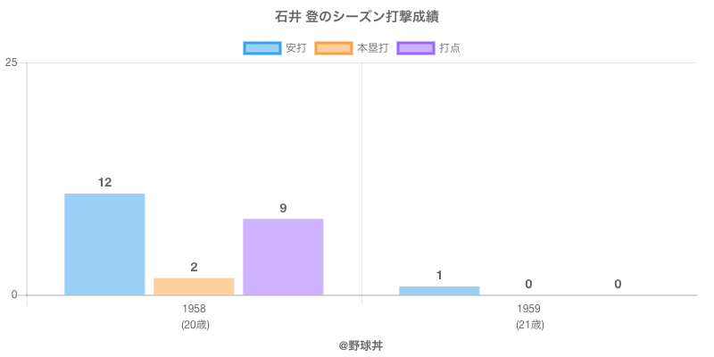石井 登 (88歳)は1958年から1959年にかけて活躍した元大洋所属のプロ野球選手です。 投打は右投右打で、守備位置は主に内野手ができ、日本球界初出場は1958年で当時21歳でした。 同年代には前岡(元中日)佐々木(元中日)がいます。 過去には1958年大洋で全41試合出場ヒット12本や1959年大洋で全10試合出場ヒット1本という結果を残しています。