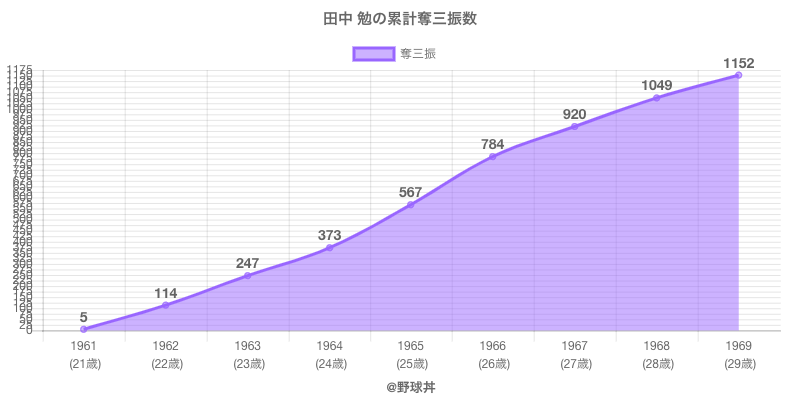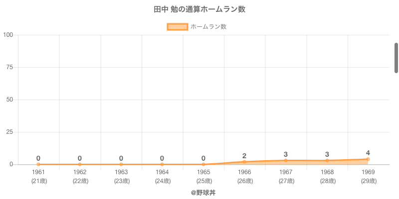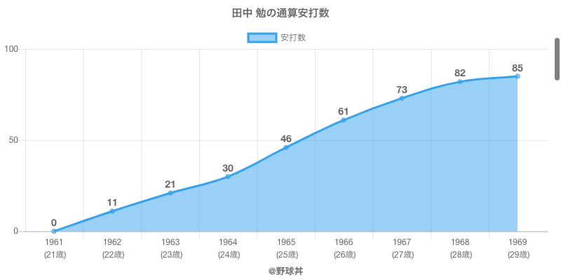 | 1968 | 中日ドラゴンズ | 35 | 58 | .155 | 9 | 0 | 1 |