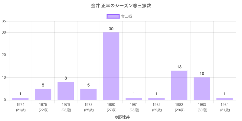 金井 正幸 (73歳)は1974年から1984年にかけて活躍した元ロッテや中日所属のプロ野球選手です。 投打は右投右打で、守備位置は主に投手、日本球界初出場は1974年で当時22歳でした。 同年代には池内(元阪急)やマーク(元横浜大洋)がいます。 過去には1980年中日で全39試合出場30奪三振や1976年中日で全13試合出場防御率10.23という結果を残しています。
