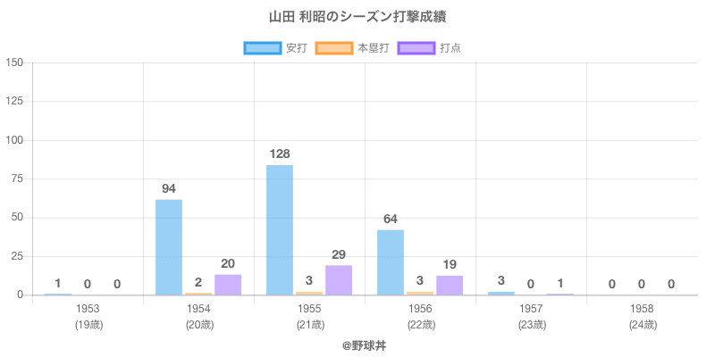 | 1954 | 高橋ユニオンズ | 131 | 375 | .251 | 94 | 2 | 20 |