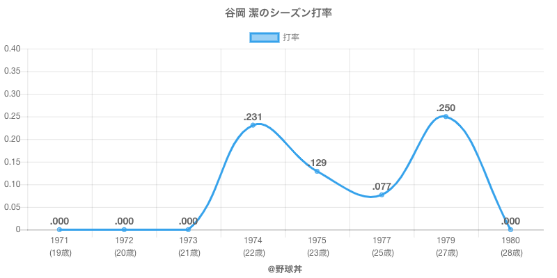 谷岡 潔 (74歳)は1971年から1980年にかけて活躍した元大洋や阪急所属のプロ野球選手です。 投打は右投右打で、守備位置は主に内野手ができ、日本球界初出場は1971年で当時20歳でした。 同年代には豊倉(元西鉄)やラリー(元ヤクルト)がいます。 過去には1975年大洋で全46試合出場ヒット4本や1977年大洋で全34試合出場ヒット3本という結果を残しています。