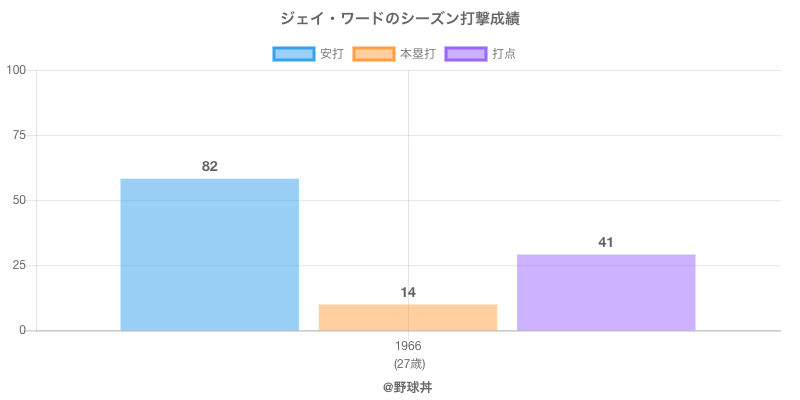 ジェイ・ワード (87歳)は1966年から1966年にかけて活躍した元中日所属のプロ野球選手です。 投打は右投右打で、守備位置は主にができ、日本球界初出場は1966年で当時28歳でした。 同年代には金(元中日)やエディ武井(元東映)がいます。 過去には1966年中日で全104試合出場ヒット82本という結果を残しています。