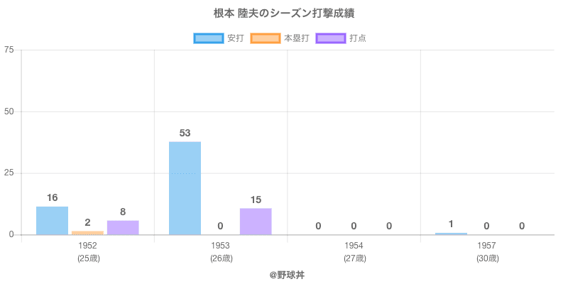 根本 陸夫 (99歳)は1952年から1957年にかけて活躍した元近鉄所属のプロ野球選手です。 投打は右投右打で、守備位置は主に捕手ができ、日本球界初出場は1952年で当時26歳でした。 同年代には長原(元阪神)畑中(元阪急)がいます。 過去には1953年近鉄で全110試合出場ヒット53本や1952年近鉄で全46試合出場ヒット16本という結果を残しています。