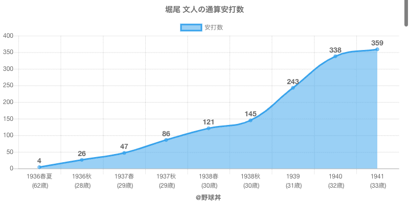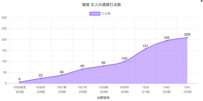 | 1937秋 | 45 | 154 | .253 | 39 | 3 | 27 | |