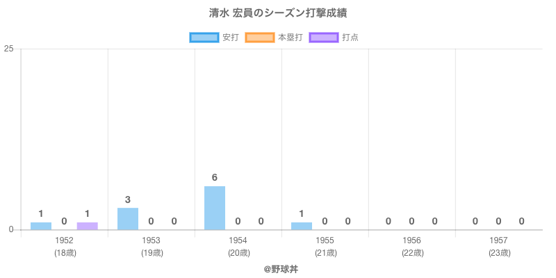 | 1953 | 23 | 65 | .333 | 1 | 2 | 1 | 25 | |