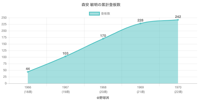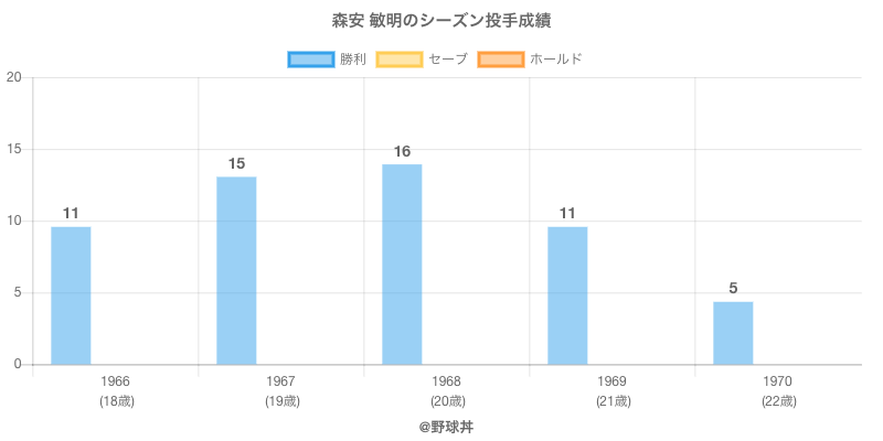 | 1966 | 東映フライヤーズ | 44 | 207 | .500 | 11 | 11 | 7 | 160 |