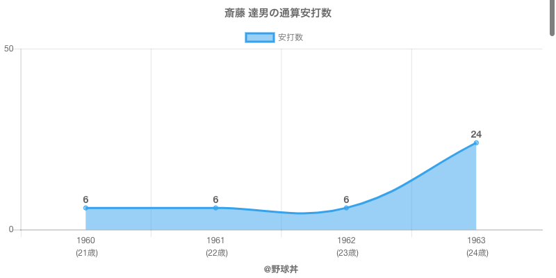 | 1960 | 広島カープ | 18 | 26 | .231 | 6 | 0 | 5 |