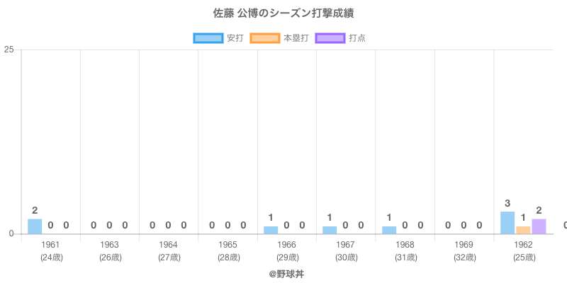 佐藤 公博 (89歳)は1961年から1969年にかけて活躍した元南海や中日所属のプロ野球選手です。 投打は右投右打で、守備位置は主に投手、日本球界初出場は1961年で当時25歳でした。 同年代には有吉(元西鉄)松下(元近鉄)がいます。 過去には1961年阪急で全47試合出場94奪三振や1965年阪急で全42試合出場48奪三振という結果を残しています。