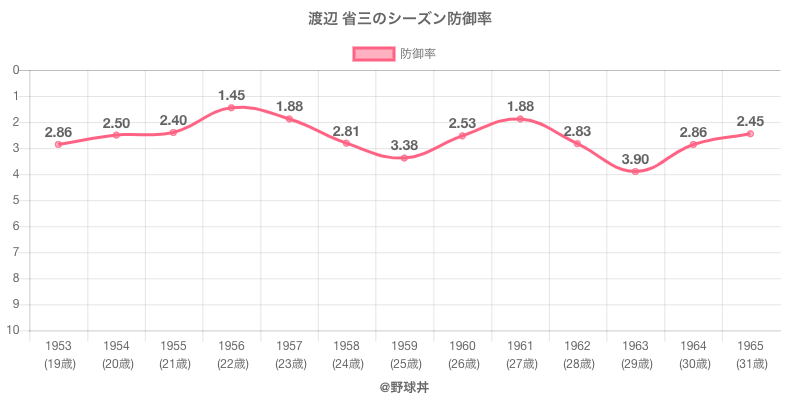| 年度 | 球団 | 順位 | 防御率 | 試合 | 勝利 | 敗北 |