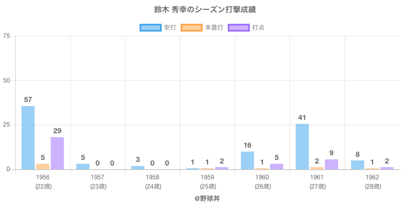 | 1956 | 毎日オリオンズ | 114 | 275 | .207 | 57 | 5 | 29 |