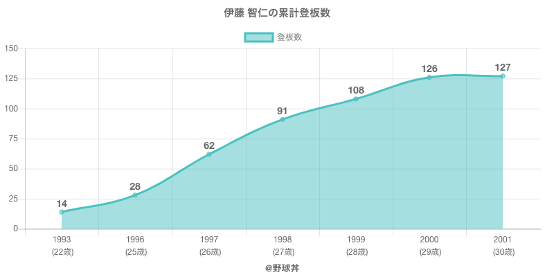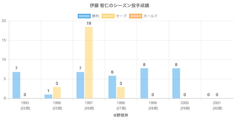 伊藤 智仁 (55歳)は1993年から2001年にかけて活躍した元ヤクルト所属のプロ野球選手です。 投打は右投右打で、守備位置は主に投手、日本球界初出場は1993年で当時23歳でした。 同年代には玉木(元東北楽天)田口(元福岡ソフトバンク)がいます。 過去には1997年ヤクルトで全34試合出場防御率1.51や1998年ヤクルトで全29試合出場154奪三振という結果を残しています。 また1度主要タイトルを獲得しています。(最優秀新人1回)