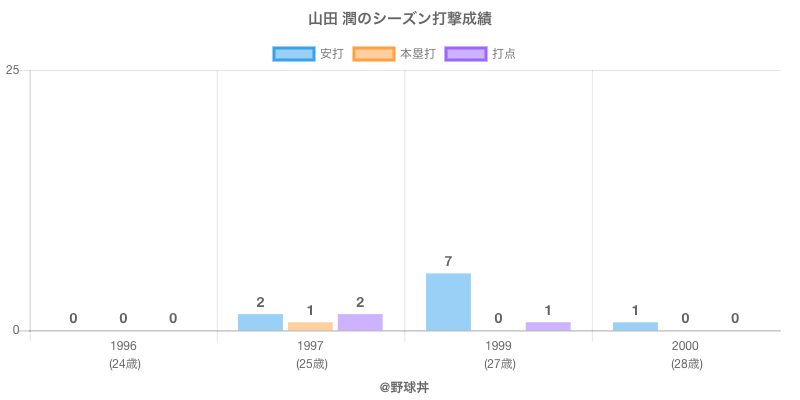 山田 潤 (54歳)は1996年から2000年にかけて活躍した元広島東洋や西武所属のプロ野球選手です。 投打は右投右打で、守備位置は主にができ、日本球界初出場は1996年で当時25歳でした。 同年代には三野(元横浜)や川﨑(元オリックス)がいます。 過去には1999年広島東洋で全21試合出場ヒット7本という結果を残しています。